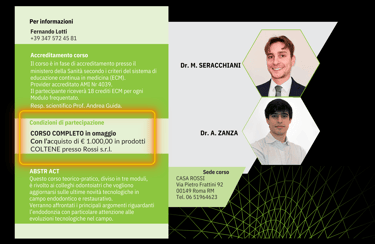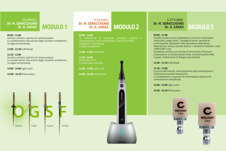 Corso in 3 Moduli con 54 Crediti ECM: Aggiornamento Tecnologico in Endodonzia e Restaurativa