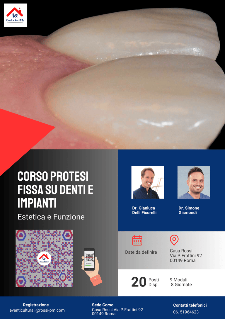L’obiettivo del corso è quello di fornire un protocollo sistematico collaudato che porti al raggiungimento di un risultato finale estetico, biologico e funzionale sia su denti naturali che su impianti. Sarà dedicato ampio spazio alle tecniche innovative, ai nuovi materiali, alle nuove tecnologie digitali senza dimenticare i concetti fondamentali estetici e funzionali che devono guidarci nelle riabilitazioni protesiche e che saranno analizzati in ogni loro aspetto.