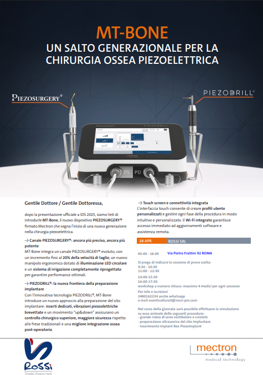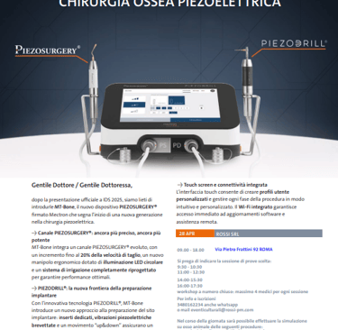 Scopri dal vivo come migliorare precisione, sicurezza e risultati implantari con la nuova tecnologia piezoelettrica