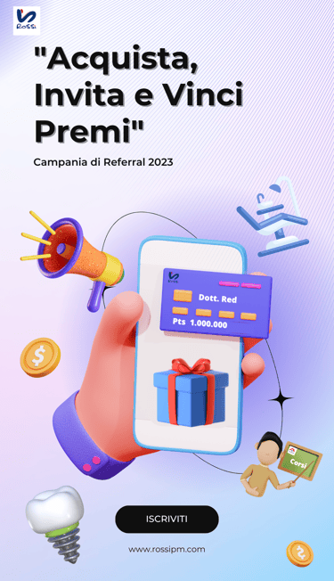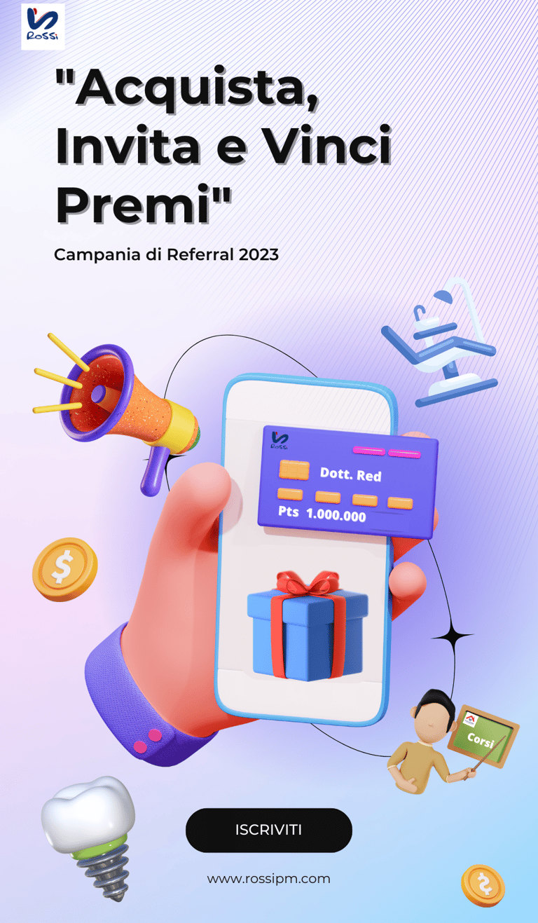 Siamo entusiasti di presentarvi la nostra nuova campagna di referral, che offre un'opportunità unica per vincere premi fantastici semplicemente acquistando i nostri prodotti, partecipando alle nostre giornate e soprattutto invitando i vostri amici ad unirsi a noi. Partecipando a questa campagna, potrete godere dei vantaggi dei nostri prodotti di qualità e avere la possibilità di essere premiati per il vostro impegno.